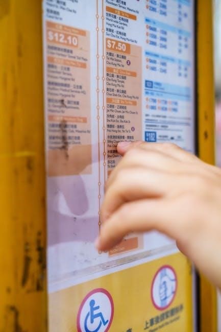 Understanding the PDF requires noting the time format and any specific notes regarding service variations. The route map within the PDF visually represents the bus’s path‚ highlighting key transfer points. It’s crucial to check the date on the PDF‚ as schedules are subject to change. Utilizing the PDF in conjunction with real-time tracking apps ensures accurate travel planning.