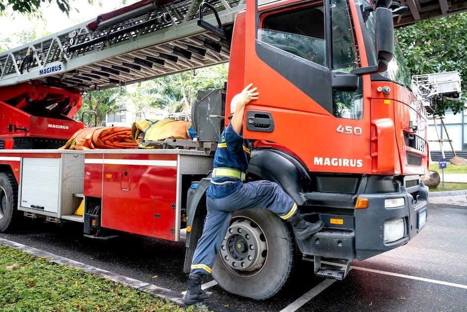 Fire truck inspection checklists prioritize aerial systems, demanding checks of extension, retraction, locking mechanisms, and outrigger stability for safe operational deployment․