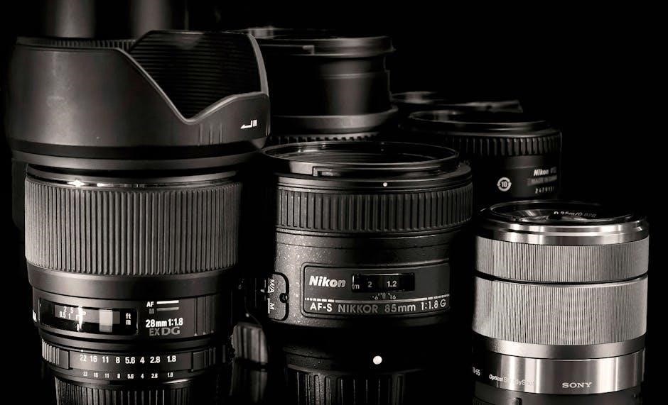 Nikkor lenses designed for the Nikon F2 represent a cornerstone of its system, offering exceptional optical quality and performance․ The initial Nikkor lenses, often referred to as “Non-AI” lenses, require an aperture preview ring on the F2 for full functionality․ These lenses cover a broad spectrum of focal lengths, from wide-angle 20mm options ideal for landscapes, to standard 50mm lenses perfect for everyday photography, and telephoto lenses extending to 300mm or beyond for wildlife and sports․